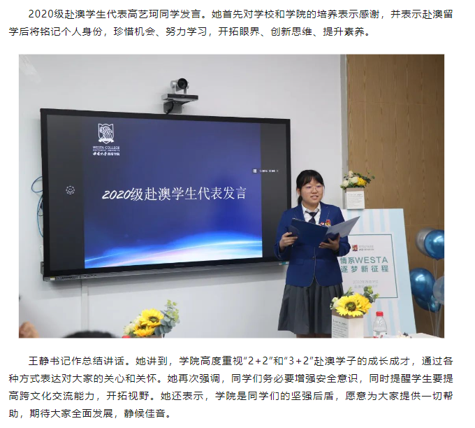 捷克论坛 举办“情系WESTA 逐梦新征程”赴澳学子座谈会