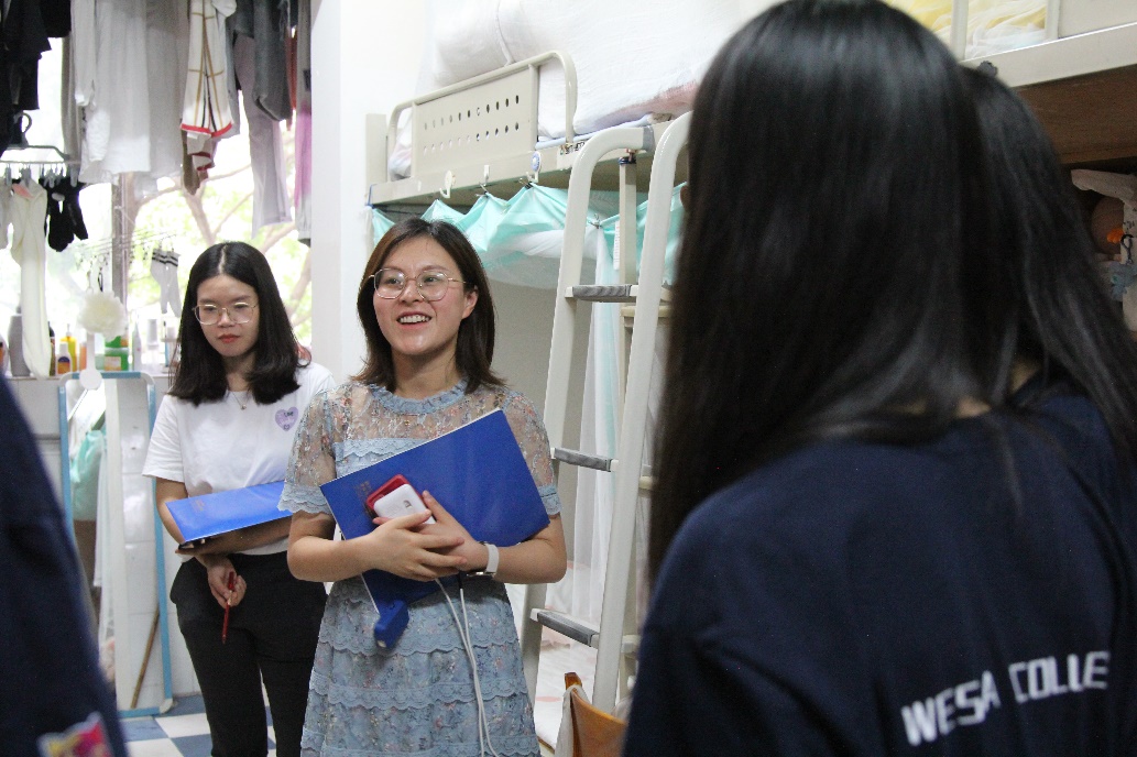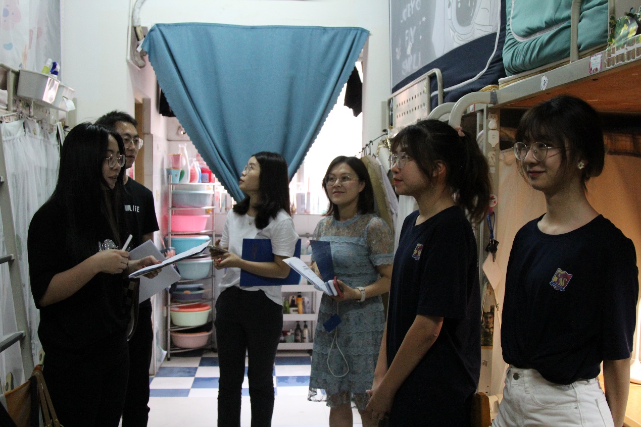 自4月25日启动比赛以来,经过线上投票和线下答辩两环节的角逐,最终有八间寝室进入线下考核决赛环节。捷克论坛 各年级辅导员组成导师团出席决赛并担任评委。老师们逐一走访各寝室,围绕寝室环境、寝室文化、寝室制度和现场印象进行考核评分。环境方面主要在于内务卫生、装饰美化以及安全隐患;文化方面侧重于介绍寝室特色和寝室氛围;现场印象则是包括寝室成员参与度、仪容仪表以及解说效果。