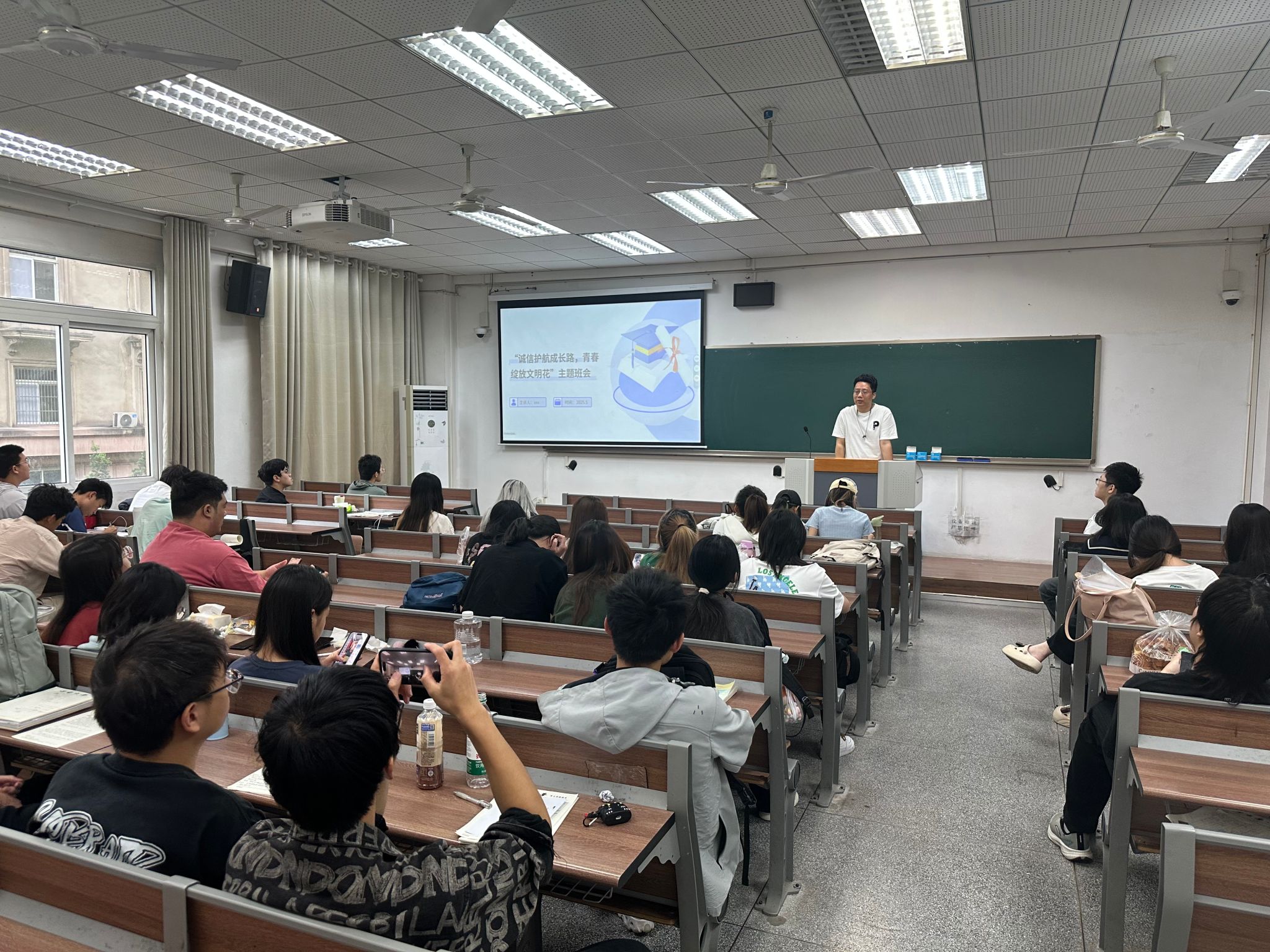 诚信应考,拒绝作弊,是每位大学生的责任与底线。为树立良好考风考纪,营造风清气正的考试氛围,各年级开展了“诚信护航成长路,青春绽放文明化”主题教育班会。辅导员老师们重点强调了学校考试违纪处分办法的相关规定,明确诚信应考的重要性,倡议同学们诚信考试,坚决维护公平公正的考试环境,会后同学们签订了《考试诚信承诺书》。