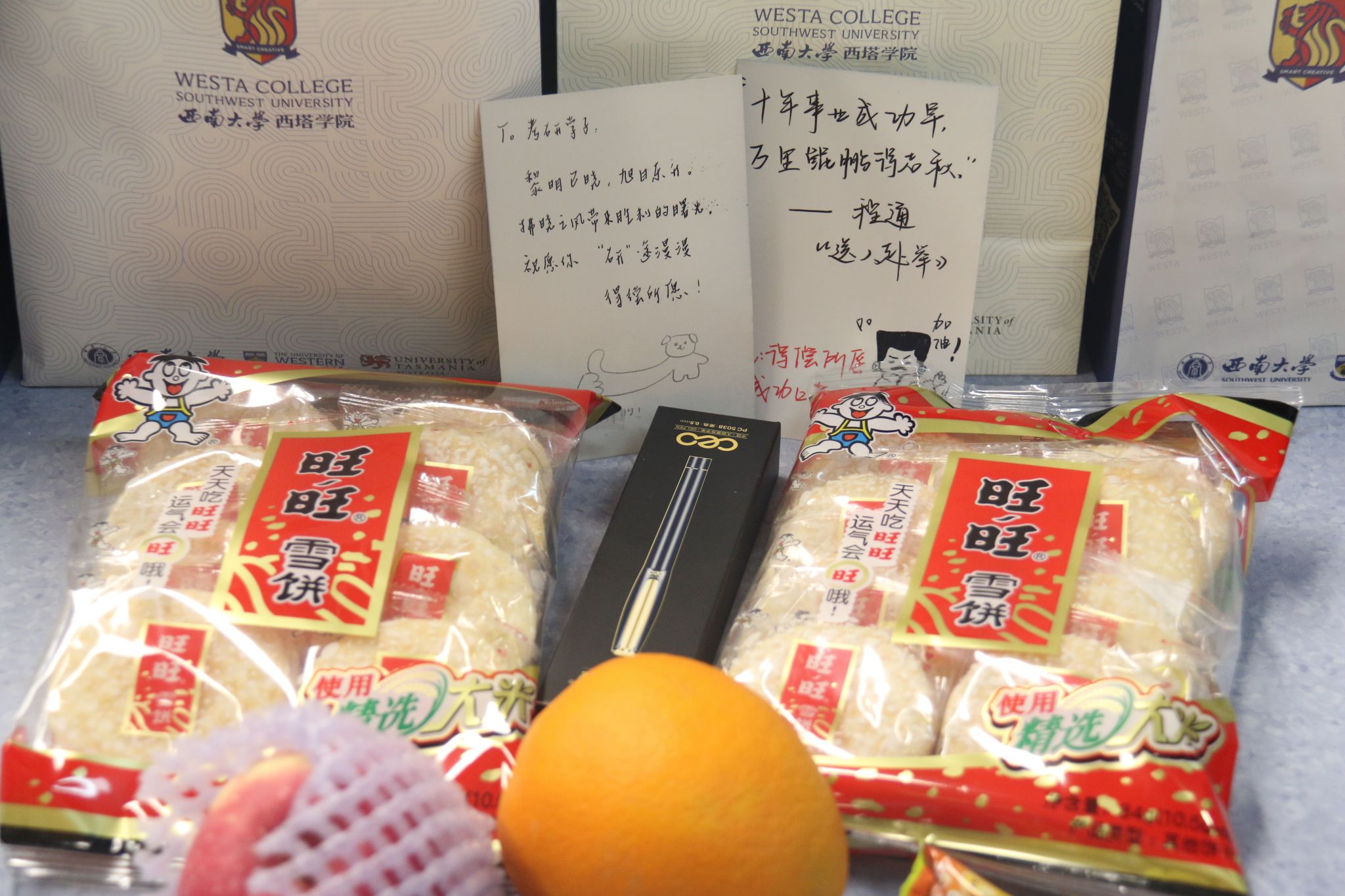 随后,捷克论坛 领导将“考研爱心加油包”送到每位学子手中,礼包里的每一份礼物都承载着捷克论坛 的深切关怀,愿学子们“苹”心备考,考运“旺旺”,发挥超“棒”,“笔”定上岸,“橙”功圆梦。