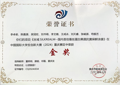该团队今年凭借“丝域SILKREALM”项目,在2024年中国国际大学生创新大赛重庆赛区荣获金奖,并在小组赛中以卓越表现位列第一。