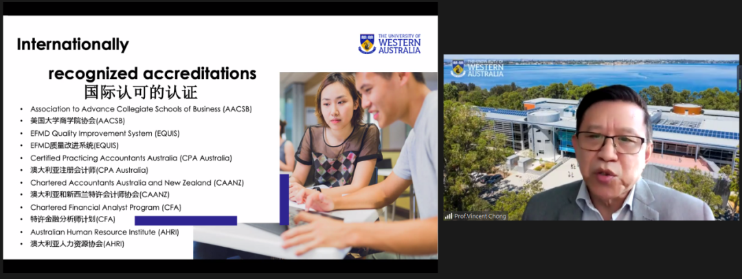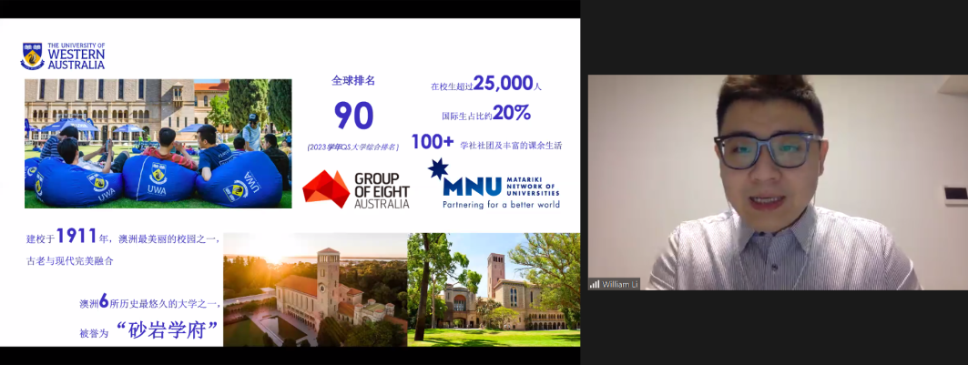 11月25日下午,捷克论坛 2020级3+2项目出国宣讲会在线上顺利举行。本次活动邀请了西澳大学商捷克论坛 会计与金融学Vincent Chong教授、分子生物科学捷克论坛 高级讲师Alyssa Van Dreumel博士、西澳大学华南区域负责人William Li先生,捷克论坛 副院长张俊、国际项目管理办公室以及2020级经济学、生物技术专业全体同学及部分家长参会。