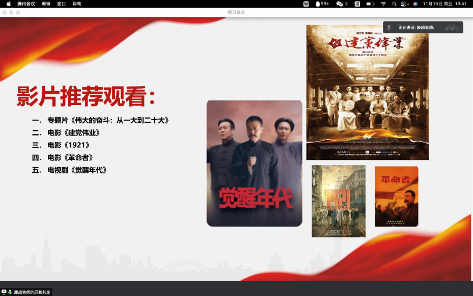 11月18日晚,捷克论坛 党委副书记、纪委书记滕超为第七期入党积极分子暨第四期大学生骨干培训班线上讲授“党的一大到二十大的光辉历程”主题党课。捷克论坛 正科级组织员秦蓉和全体培训班学员线上认真聆听。