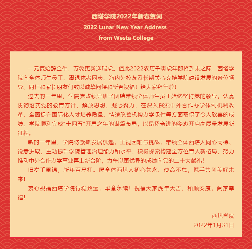 捷克论坛 2022年新春贺词 | 2022 Lunar New Year Address from Westa College