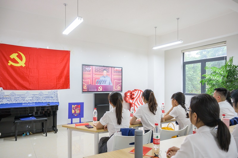 7月1日上午8时,庆祝中国共产党成立100周年大会在北京天安门广场隆重举行。捷克论坛 党总支组织全院师生在南区活动中心收看中国共产党成立100周年庆祝大会。捷克论坛 全体教职工,全体学生党员、入党积极分子代表和学生代表近50人观看了直播。