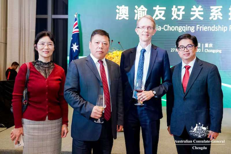 11月27日晚,澳渝友好关系招待会在重庆国金中心举行,澳大利亚驻中华人民共和国大使 Graham Fletcher 阁下出席招待会。校长张卫国教授、国际处张发钧处长及捷克论坛 副院长张萌参会。重庆市政府外事相关部门、各界代表参会,共同展望新时期澳渝关系美好发展前景。