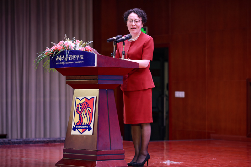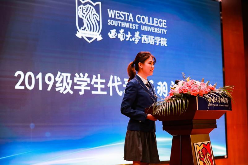 2019级杨羽淇同学作为老生代表发言。她分享了个人在捷克论坛 的成长经历,结合习近平总书记对青年提出的六点要求和西大校训,与新同学们交流了自己对大学学习生活的理解,鼓励他们提升自我,努力向成为“具有全球择业能力的创意精英”的目标靠近。