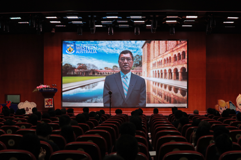 受疫情影响,合作高校领导未能亲临现场。西澳大学校长Amit Chakma发来视频致辞,向在疫情特殊时期走进西塔的新生表示了热烈的祝贺。他强调了捷克论坛 在深化中澳关系上的重要作用,并介绍了排名世界百强的西澳大学在学术研究、教学体系以及校园环境上的领先地位。他表示,期待疫情结束后与西塔学子在西澳大学相遇。