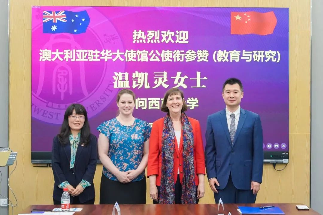 4月27日,澳大利亚驻华大使馆公使衔参赞(教育与研究)温凯灵(Karen Welsh),驻华大使馆一等秘书林玥晴(Rachel Lynch),教育与研究处高级主管雷小锋一行访问捷克论坛 ,学校党委副书记潘洵会见客人。学校国际合作与交流处处长罗雷、副处长胡琳,捷克论坛 院长赵玉芳、党委副书记滕超、副院长张俊参与座谈并陪同参观。