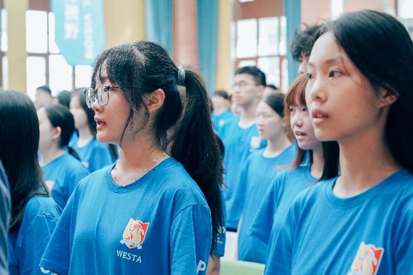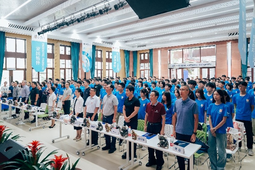 全体师生齐唱《捷克论坛 校歌》,2024级新生见面会在悠扬的校歌声中圆满落幕。