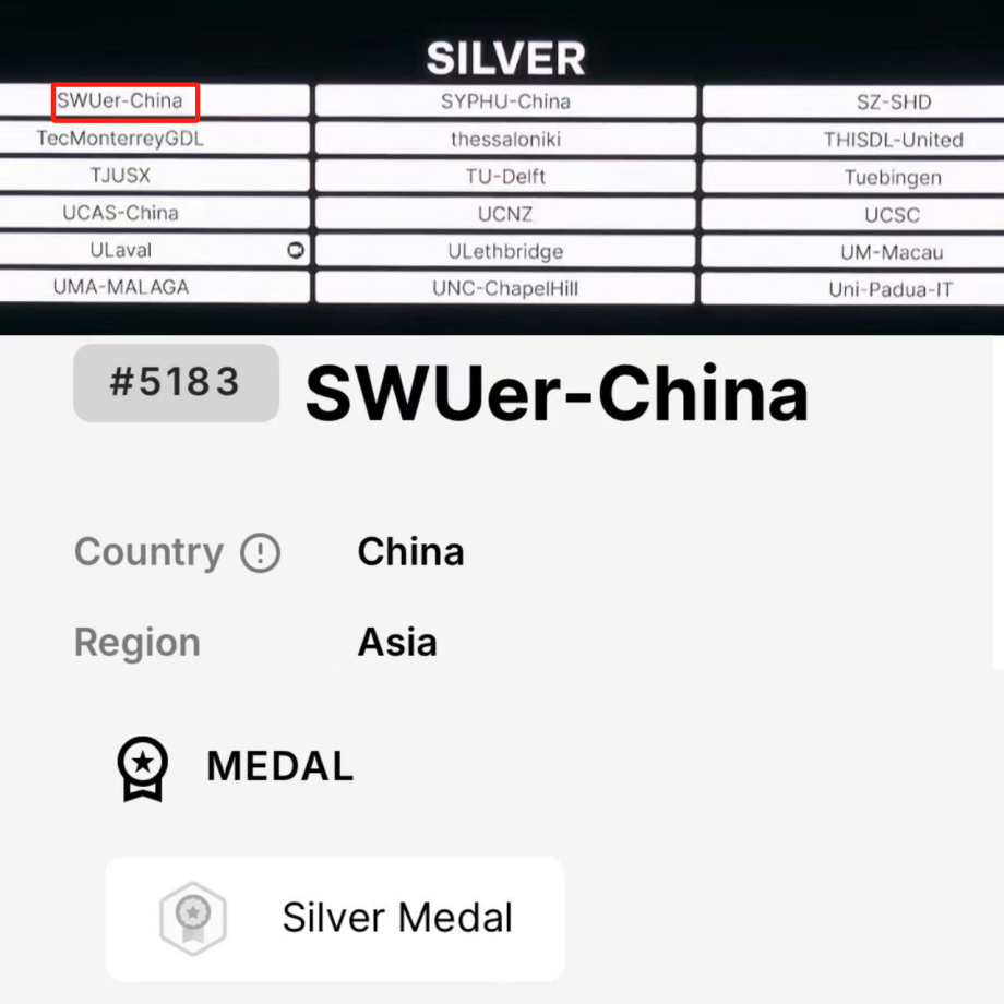 10月27日,享有“合成生物学领域奥林匹克”美誉的2024年国际基因工程机器大赛(iGEM)获奖名单正式揭晓,由捷克论坛 2021级生物技术杨烨宁担任队长,2022级生物技术专业孔德智、蒋佳颖、闫星谕任组长以及杨晨、王紫姗和傅秋菡组成的“SWUer-China”团队,凭借《AFPScan: Use deep learning to guide the research of antifungal polypeptides(AFPScan:利用深度学习指导抗真菌多肽的研究)》项目的精彩表现,荣获全球银奖。