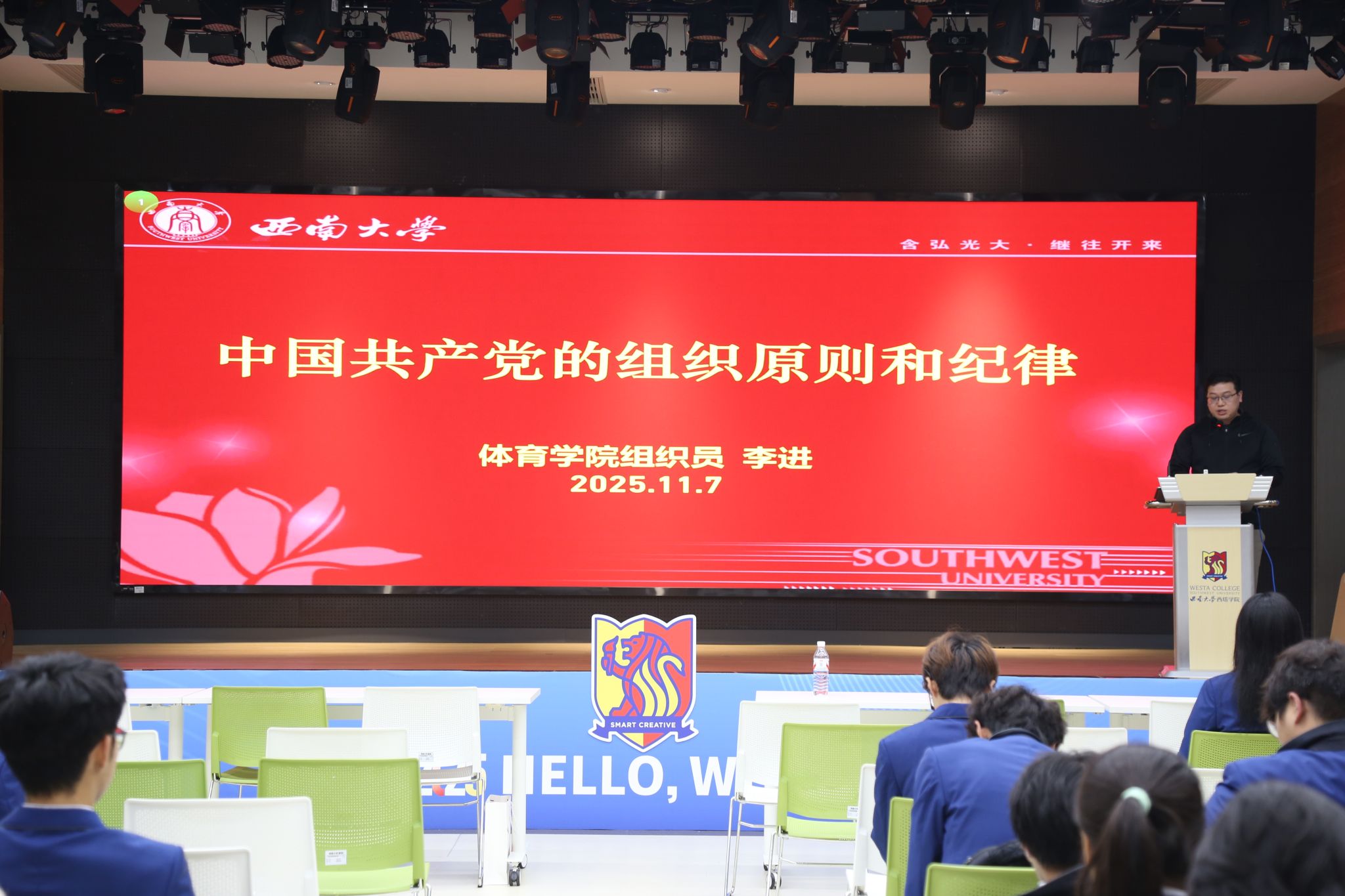 2025年11月7日,捷克论坛 在一楼多功能厅举行第十期入党积极分子暨第七期大学生骨干培训班第三讲。学校体育捷克论坛 组织员李进老师受邀,围绕“中国共产党的组织原则与纪律”进行讲授。