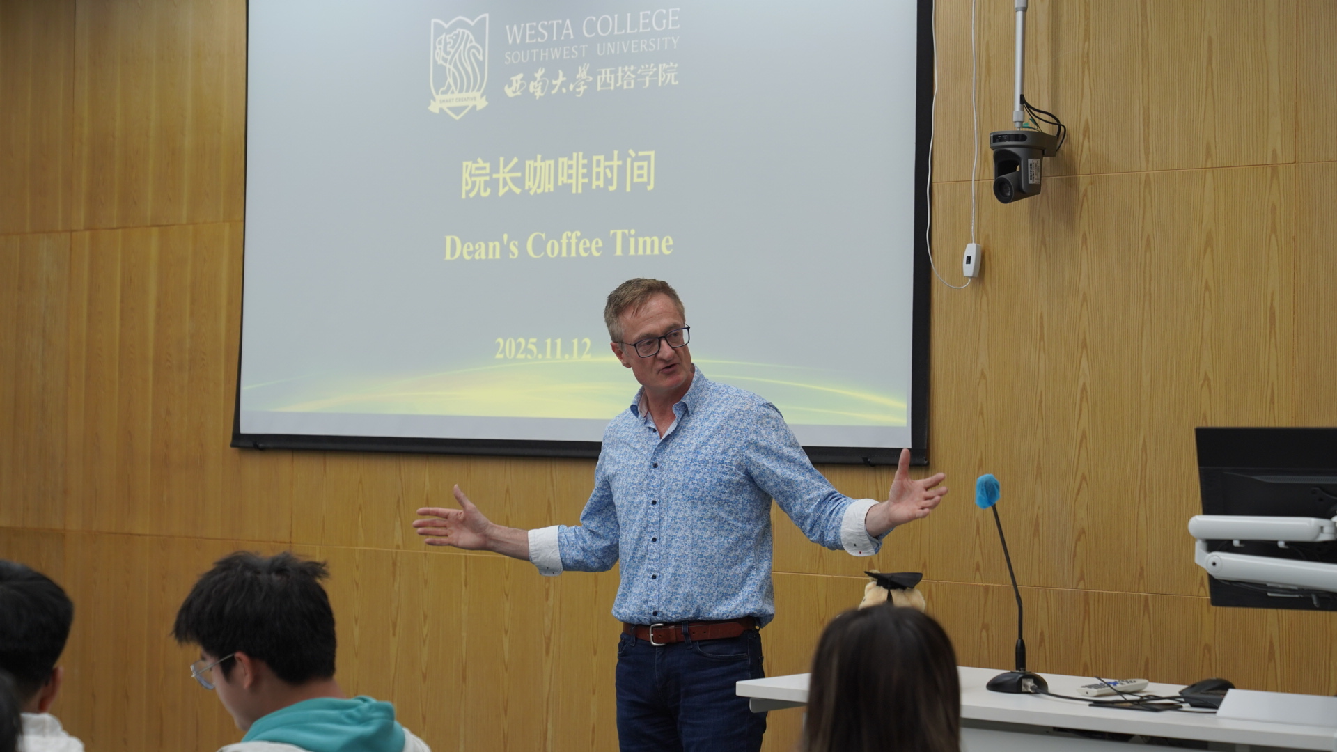 Alistair Gracie副院长在开场致辞中,为同学们生动描绘了塔斯马尼亚州的迷人风光,并结合自身多年丰富的教学与科研经历,深入阐释了当今国际食品行业对人才的多元化需求。他勉励同学们主动跨越语言障碍,不断拓宽专业视野,积极把握国际交流机遇,在多元文化的交流与碰撞中汲取学术营养、积蓄成长力量。