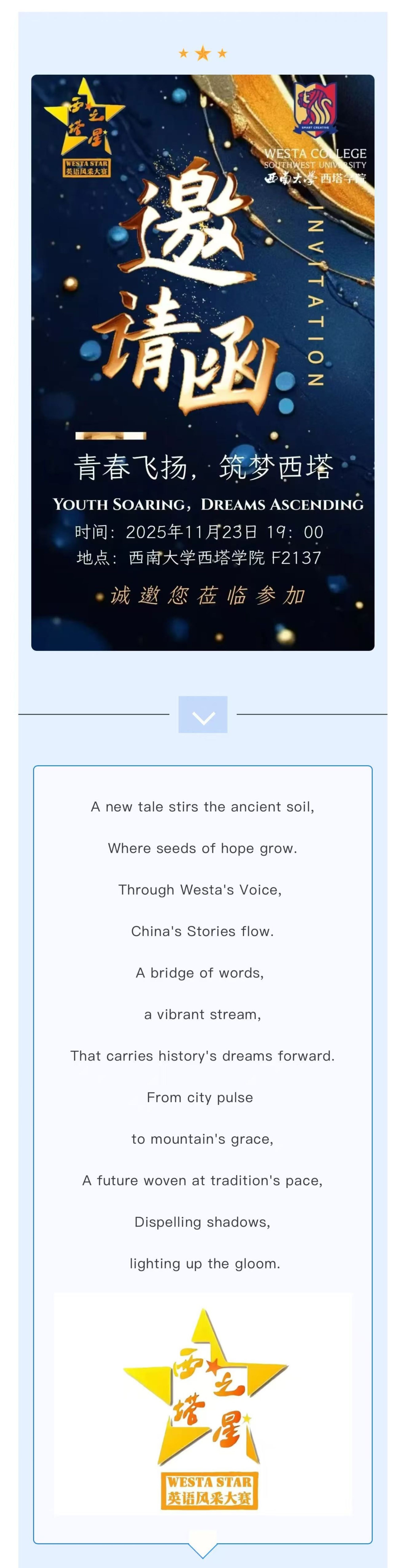 捷克论坛 2025年“青春飞扬,筑梦西塔”英语风采大赛(决赛)邀请函