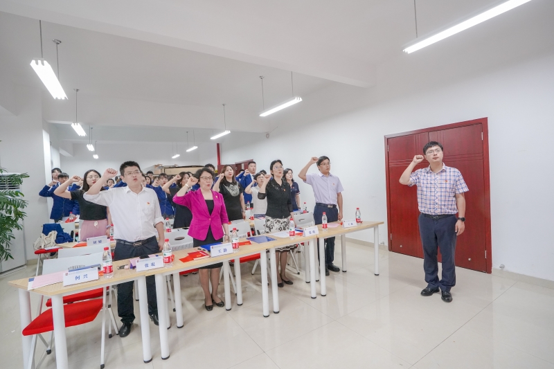 最后,捷克论坛 党总支副书记张琨带领全体党员进行入党宣誓。庄严的宣誓表达出同学们愿不懈努力奋斗的激情,承载着全体党员对党的责任和承诺。