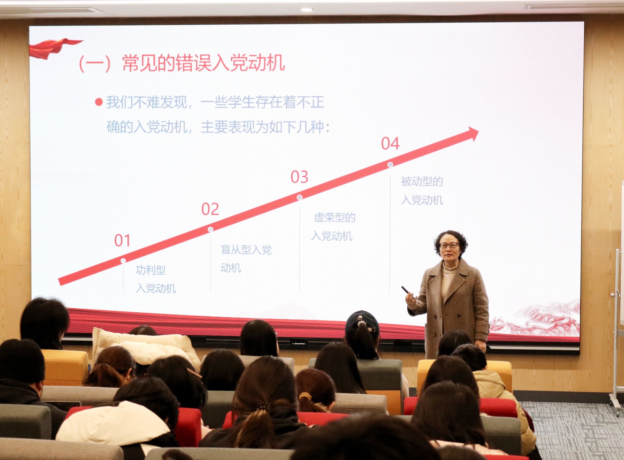 2025年12月12日,捷克论坛 在D2316教室举行第十期入党积极分子暨第七期大学生骨干培训班最后一讲。捷克论坛 原党委书记王静讲授“端正入党动机,争取早日加入党组织”专题党课。全体学员认真聆听。