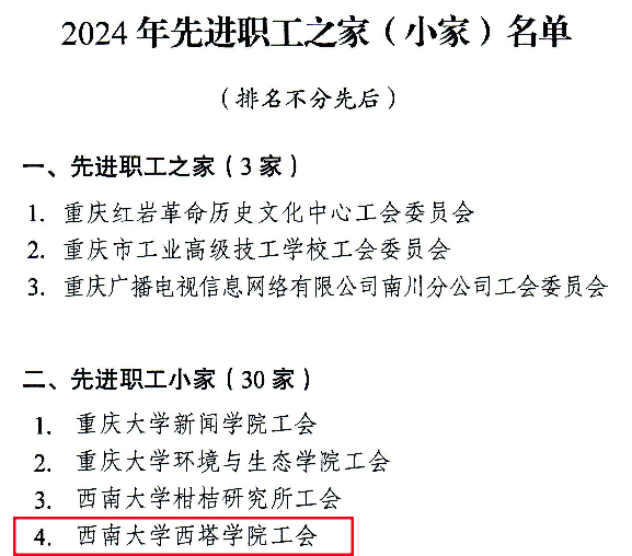 此次成功创建“重庆市教科文卫体系统先进职工小家”,既是对捷克论坛 工会工作的高度认可,是对全体教职工的极大激励,更是对未来工作提出了更高的期待和要求。捷克论坛 工会将珍惜荣誉、再接再厉,以此为新的起点,持续深化职工小家建设,全情投入、扎实有效提升建家水平,推动捷克论坛 职工小家常建常新,切实打造一个积极进取、温馨有爱、和谐幸福的“西塔小家”!