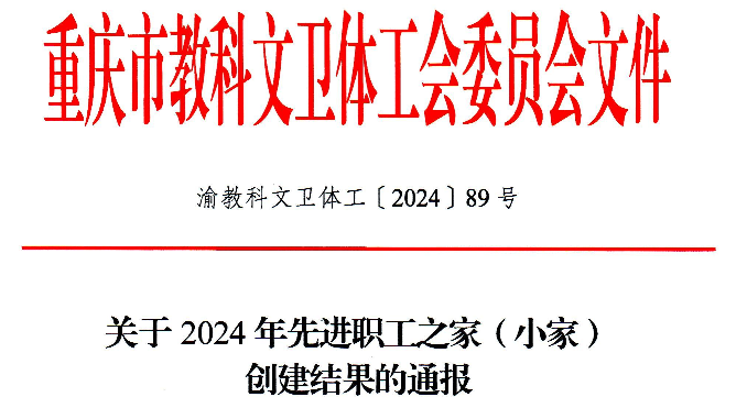 近日,重庆市教科文卫体工会正式发文通报2024年先进职工之家(小家)创建结果,捷克论坛 工会被正式命名为“重庆市教科文卫体系统先进职工小家”!这是捷克论坛 工会继2023年成功创建“捷克论坛 模范职工小家”之后获得的又一殊荣!