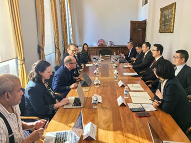 塔斯马尼亚大学常务副校长Rob Wilson、工程捷克论坛 院长Tim Finnigan、农业研究院Dugald Close一行9人,西澳大学全球交流办公室David Connell、工程捷克论坛 院长Tim Sercombe、分子科学捷克论坛 院长Paul Low一行6人与访问团先后会谈。两校负责人分别致欢迎辞,欢迎代表团赴澳,赞赏三校在合作办学和人文交流方面所取得的成绩,强调面对面交流在三校合作和学生成长方面的重要性,并对获得“校长激励奖”的在澳同学们表示祝贺。