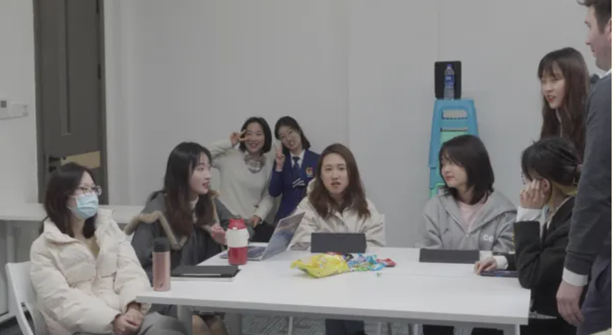 外教Luke利用一段关于澳洲大学生活的短视频引起在场学生兴趣。在自由分组后,现场师生开始就中澳文化和校园生活,尤其是课后社团的话题使用英语进行交流讨论。