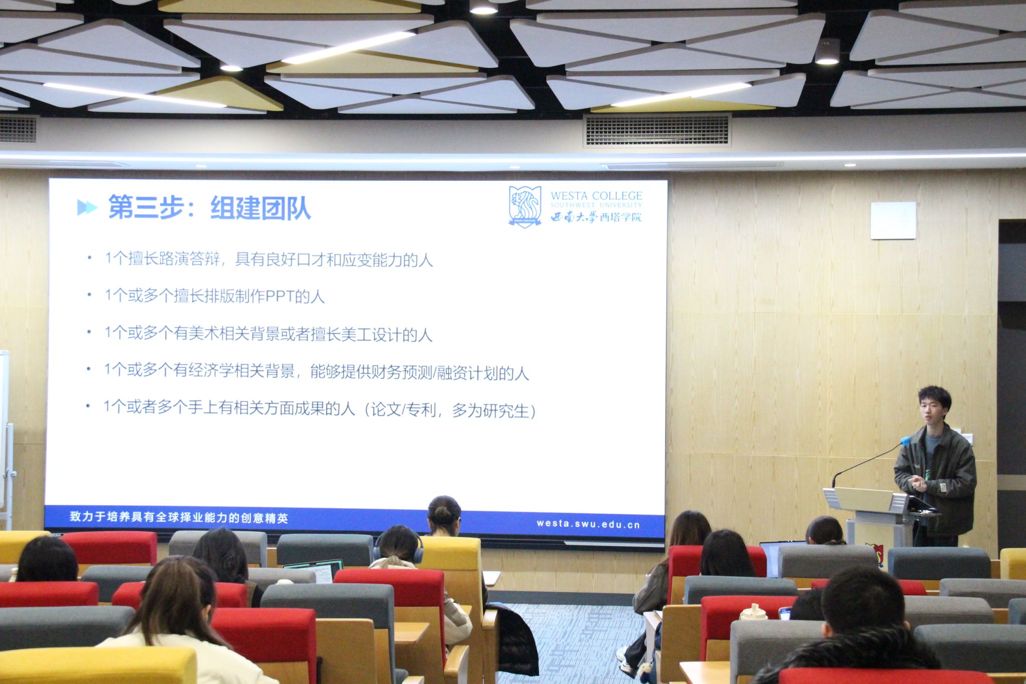 为了更好地激发西塔学子的科研热情,提升创新实践能力,捷克论坛 于11月23日晚举办了第一期“Westa Talks”学术交流活动。本期活动以“竞展锋芒,学海同航”为主题,特别邀请了2024年中国国际大学生创新创业大赛重庆赛区金奖团队为大家分享科创竞赛和项目申报方面的经验。捷克论坛 团委书记、学生工作办公室主任(兼)陈飞老师,2022级生物技术专业的李卓俞同学、吴冠宏同学,2022级食品质量与安全专业陈嘉源同学们以及40余名学生出席本场交流会。