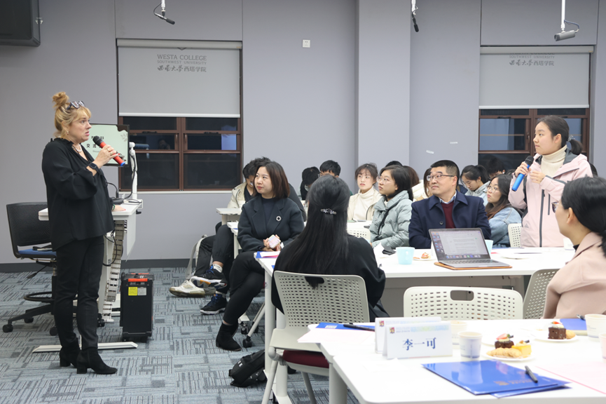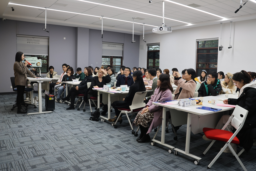 来自西澳大学商捷克论坛 的副院长Jacqueline Birt教授介绍了要与国际接轨所需具备Accounting、Economics、Finance等领域的13项技能。她热情洋溢地分享自己求学、工作中的多段丰富的经历,鼓励每位西塔学子要具有超前学习的意识与行动力,在享受大学时光时充分利用好捷克论坛 浓厚的学术及语言环境,提升自己的综合能力。